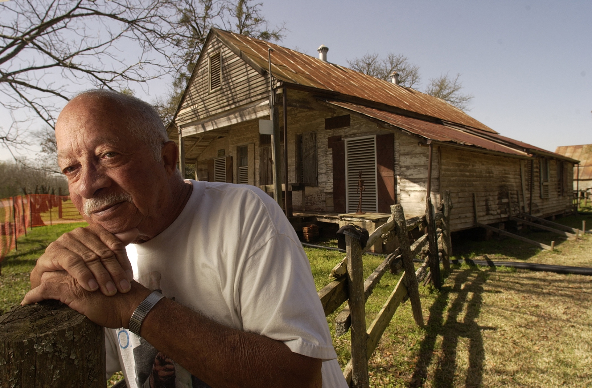 Leo Metoyer in front of the Oakland Plantation in Cane River , Louisiana. Metoyer, a descendent of the original Metoyer creoles of color, grew up at the planatation where his father was overseer.